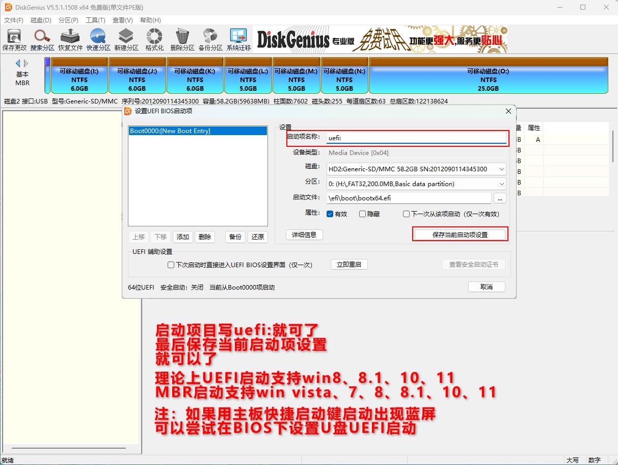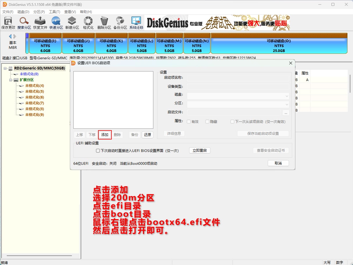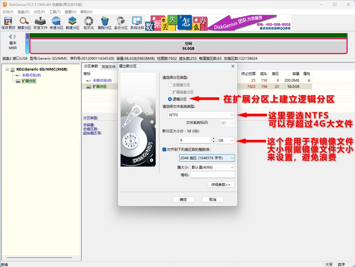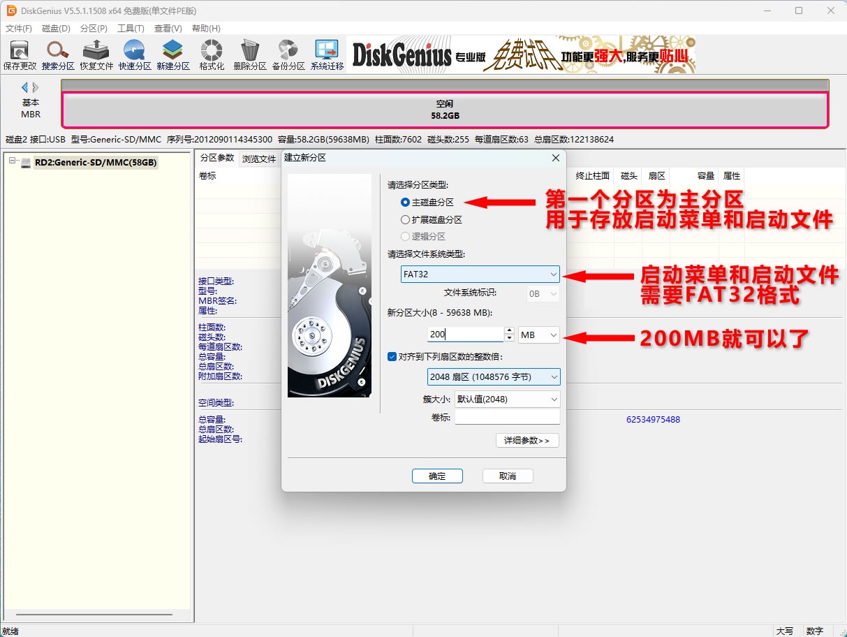 准备一个大点的空优盘,用diskgenius分区,教程如图。