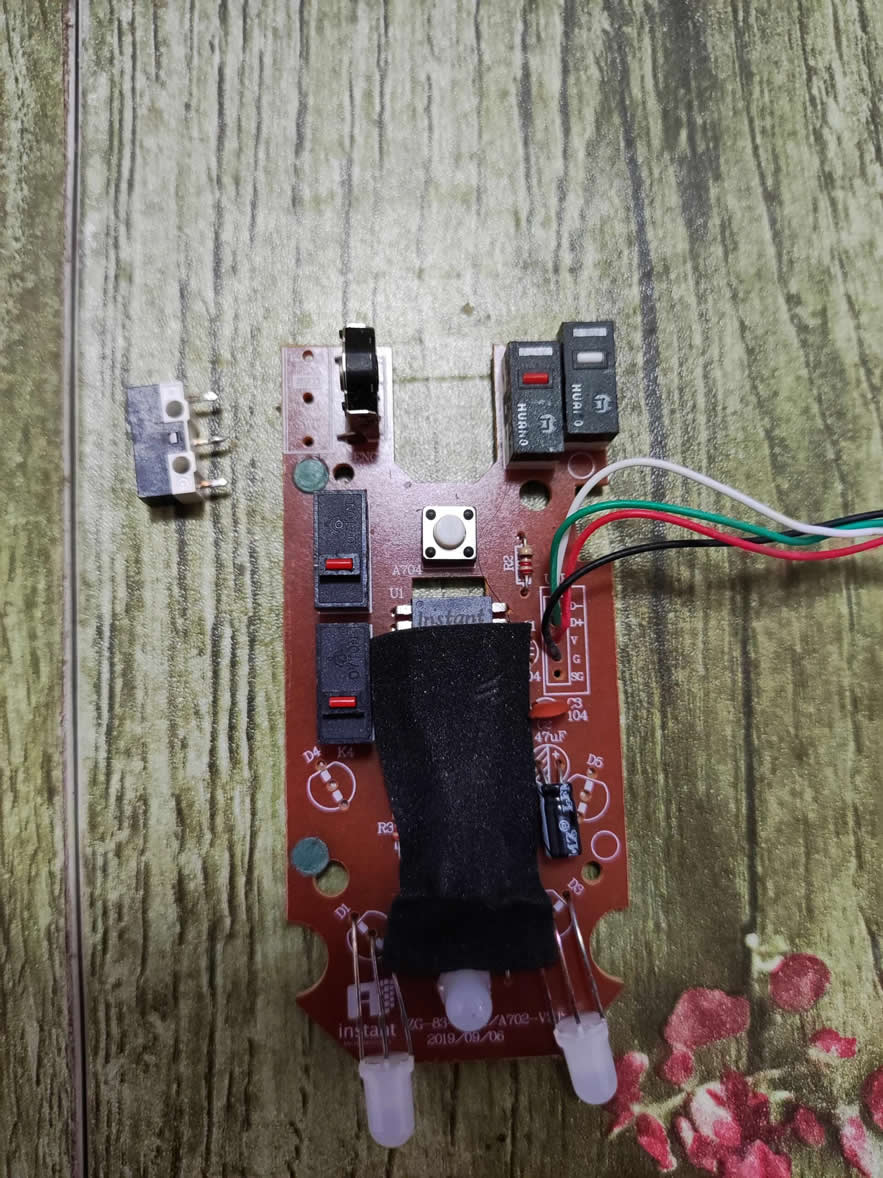 一般鼠标用个两年或者三年,按键就会出现连击,这个时候就可以把鼠标维修一下,其实维修很简单,换个按键就可以了。准备工具,带松香焊锡丝(带松香的容易融化),吸锡器(用于吸掉焊点),烙铁一个。工具准备齐全后就可以开始了,烙铁先插电加温2分钟,然后把按键上的锡点用烙铁融化掉,然后用吸锡器把焊点吸出来,一般就2-3个焊点,图2就是已经把焊点吸掉了,按键就取下来了,然后换上新买的按键就可以了,一般拼夕夕就可以买到,2个按键价格在5元左右。图3是新的按键焊接上去了,图4是焊接完的正面图,图5是组装好,开始上盖的图。基本5-10分钟时间就可以完工,鼠标的按键就修复好了。一般对于电竞鼠标,价格比较贵的鼠标,一般按键坏了后,整体扔掉挺可惜的,还是有必要尝试修复一下的。