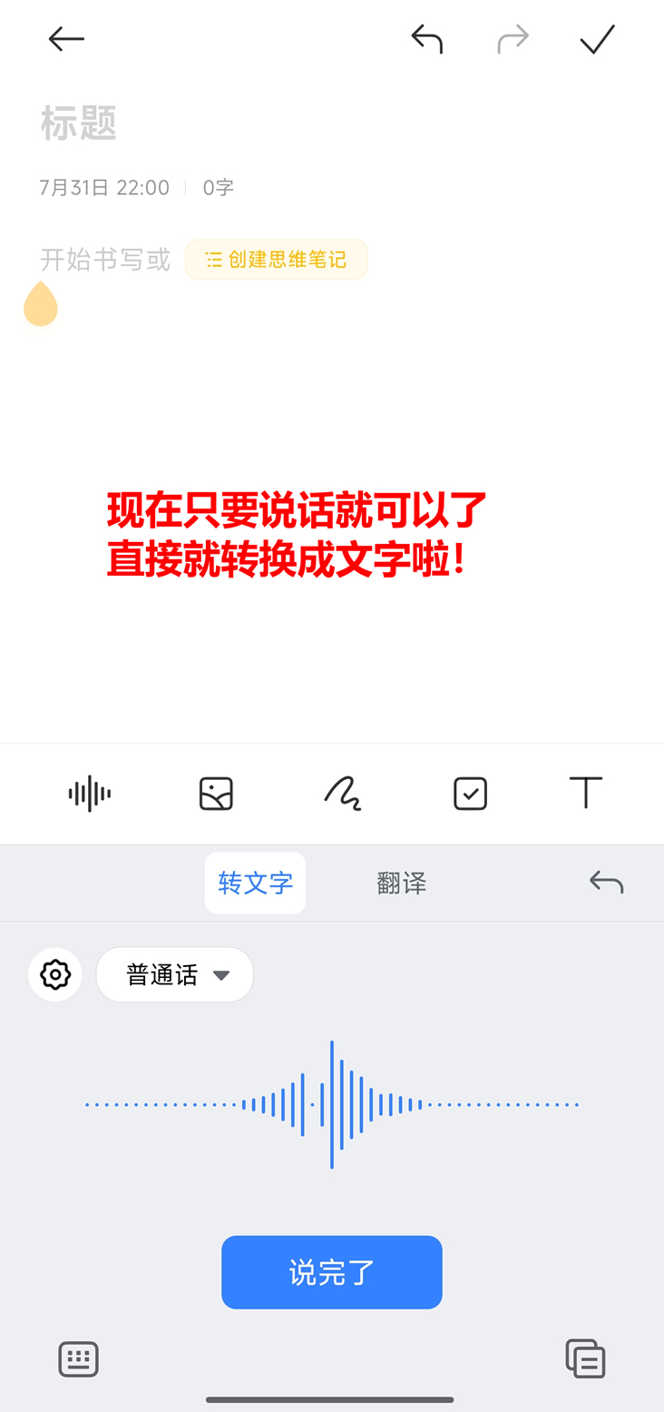 然后就可以开始说话转换文字啦!